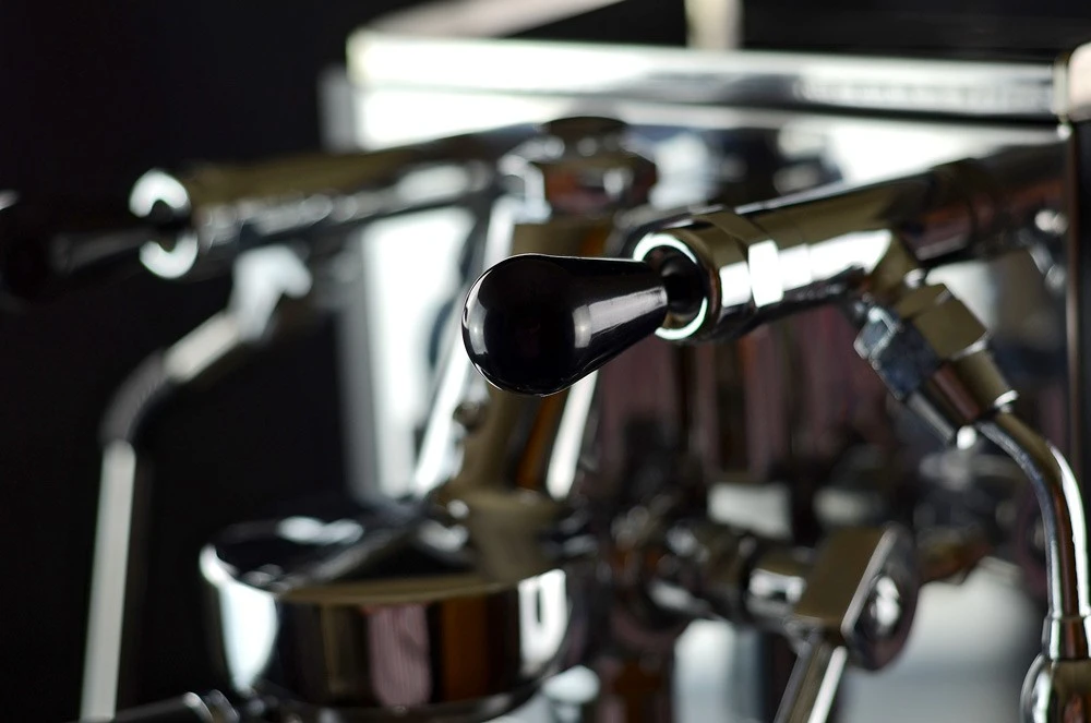 Der 1,5l isolierte Edelstahlkessel hat ein ausreichendes Volumen für den Kaffee- und Dampfbezug. ACM verbaut hier eine optisch sehr ansprechende E61-Brühgruppe. Der Kaffeebezug lässt sich durch den Bezugshebel an der rechten Seite der Brühgruppe starten. Der Ton beim Bezug ist zu Beginn der normale satte Ton einer Vibrationspumpe. Sobald die Pumpe den Bezugsdruck erreicht, wird sie schlagartig leise wie eine Rotationspumpe. Dies löst bei den Kunden jedes Mal ein Staunen aus.