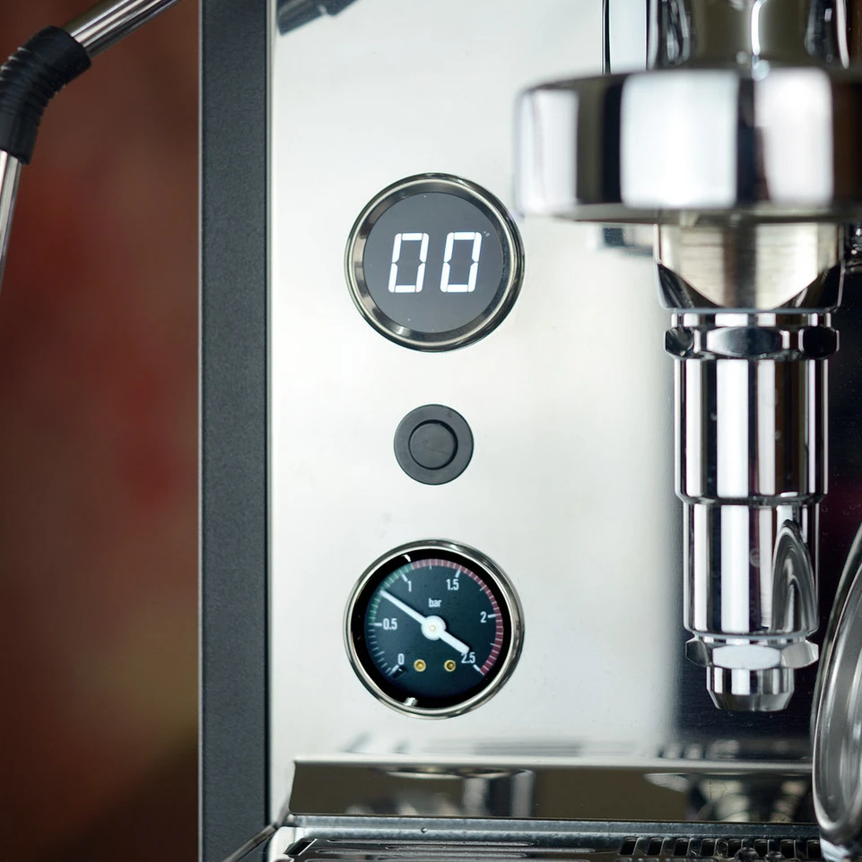 Der Trend aus 2020 bei Siebträgermaschinen ist absolut der Shottimer. Gerade für Neulinge in der Siebträgerwelt eine praktische Sache. Kommen die Kunden doch oft vom Vollautomaten oder vom Kapselmaschinchen, so sind die Vorkenntnisse für echt guten Kaffee und Espresso leider nur gering. Daher hilft so ein Shottimer schon mal bei der Übergangszeit. wenn man sich dann an die Abläufe gewöhnt hat braucht man ihn eigentlich nicht mehr so oft. Aber am Anfang ist er echt praktisch. Übrigens zählt der Timer beim Start des Brühvorgangs ganz einfach von Null Sekunden hoch. Ziel sollte eine Brühzeit von ca. 25 Sekunden sein. Wenn nach dieser Zeit zu wenig oder bereits zu viel in der Tasse sollte man die Mühle/Mahlgrad/Menge weiter optimieren. So lange bis nach ca. 25 Sekunden 25 ml im sind. Der Zusatz „TEMPO“ ist sozusagen der Spitznamen für die Shottimer Funktion!