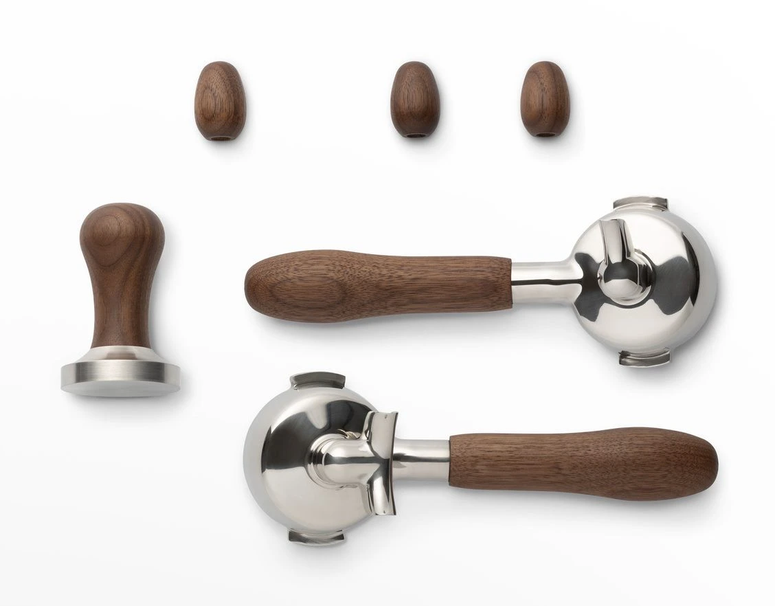 - Mit einem oder zwei Siebträgern, 2 Kipphebel, Bezugshebelgriff und 58mm Tamper