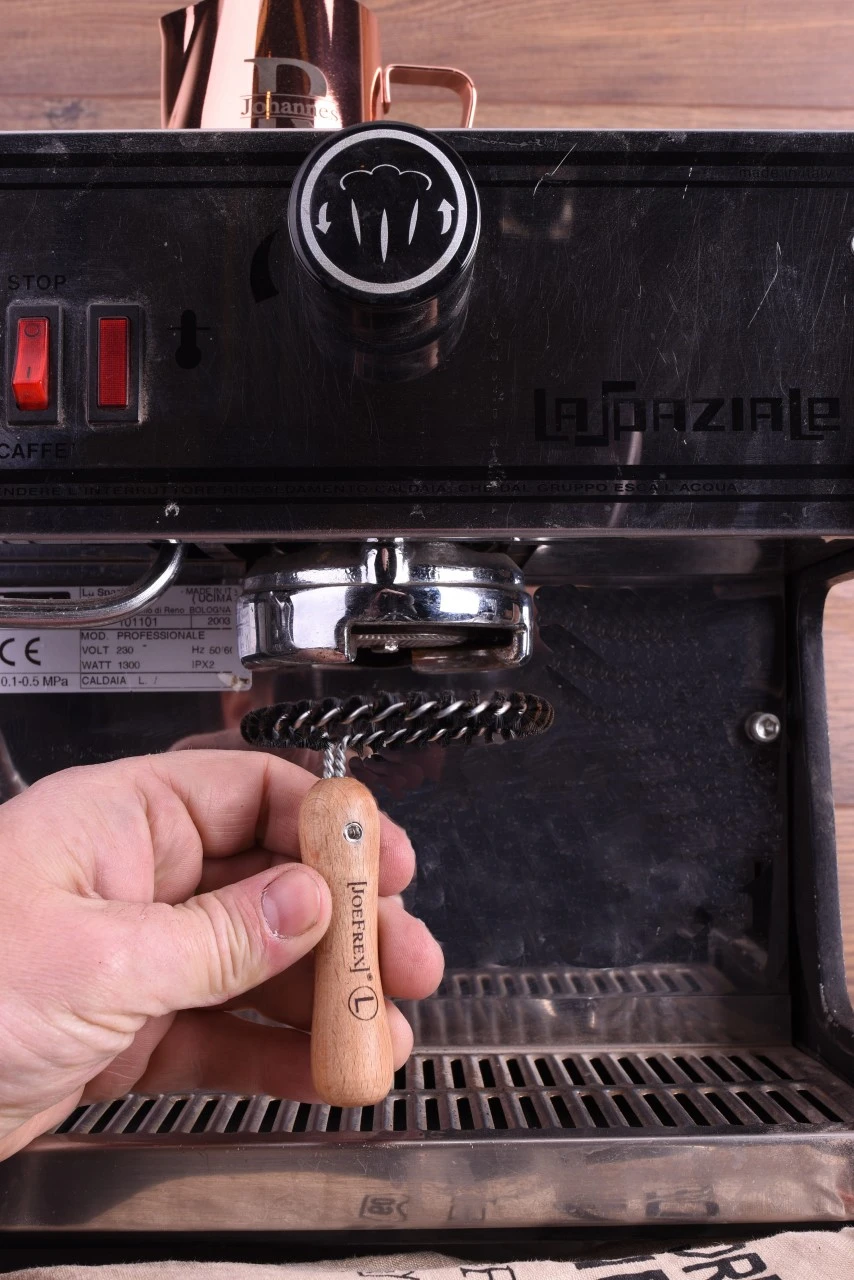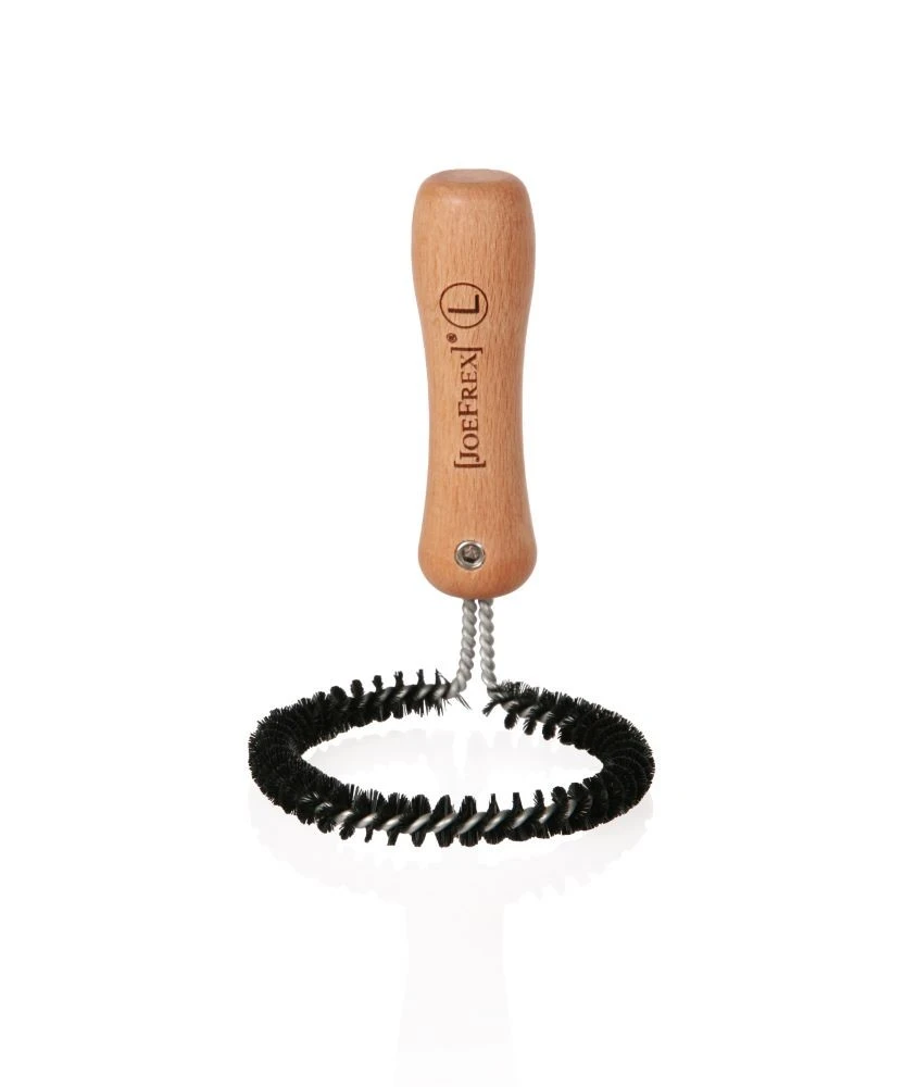 Diese Bürste ist der neueste Artikel aus dem Hause JoeFrex. Mit ihrer runden Form passt sie perfekt an die Unterseite von allen 56-58mm Brühgruppen. Optisch schlicht, mit hochwertigem Holzgriff ist diese Rundbürste ein perfekter Neuzugang für Ihr Homebarista-Equipment. Mithilfe dieser Brühgruppenbürste lässt sich die Brühgruppe+Dichtung vom Großteil der Kaffeereste und anderem Schmutz reinigen – dort kann sich nach längerer Zeit nämlich einiges ansammeln. JoeFrex-Qualität natürlich Made in Germany!