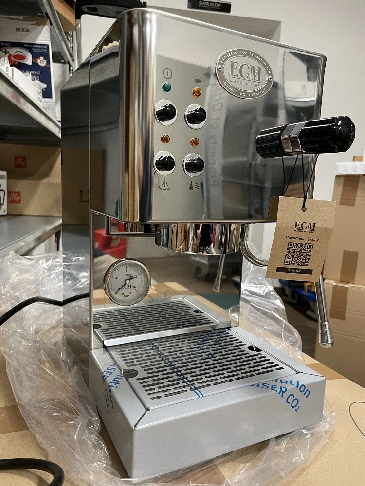 Die ECM Casa V Siebträger Espressomaschine verbindet alles, was man als Einsteiger in die Siebträgerwelt benötigt. Trotz der geringen Abmessungen hat es geschafft solide Technik unterzubringen, um auch in einer kleinen Küche nicht auf Espressogenuss verzichten zu müssen. Der verwendete Kessel aus Messing sitzt direkt über der Brühgruppe und überzeugt mit einer sehr kurzen Aufheizphase. Natürlich geht wieder etwas Platz für die Kaffeemühle und Zubehör flöten. Aber insgesamt spart man gegenüber den fetten Maschinen aus dem Hause ECM oder Rocket sehr viel Platz. Gerne bieten wir Ihnen auch das Zubehör dazu an.