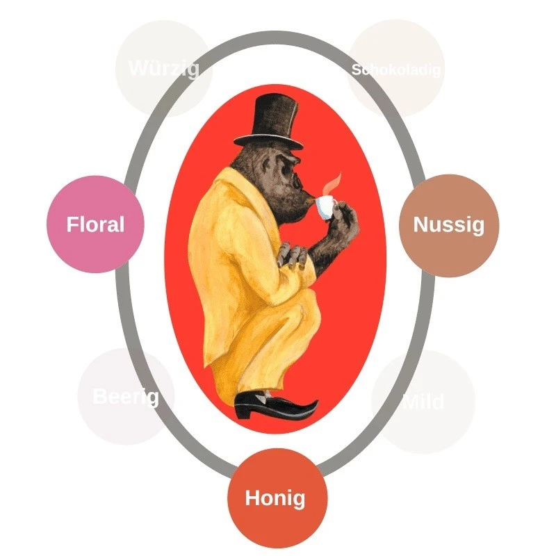 Die eher kräftige Intensität des Kaffees überzeugt mit einem blumigen, süßen Aroma und einer zusätzlich nussigen Nuance.