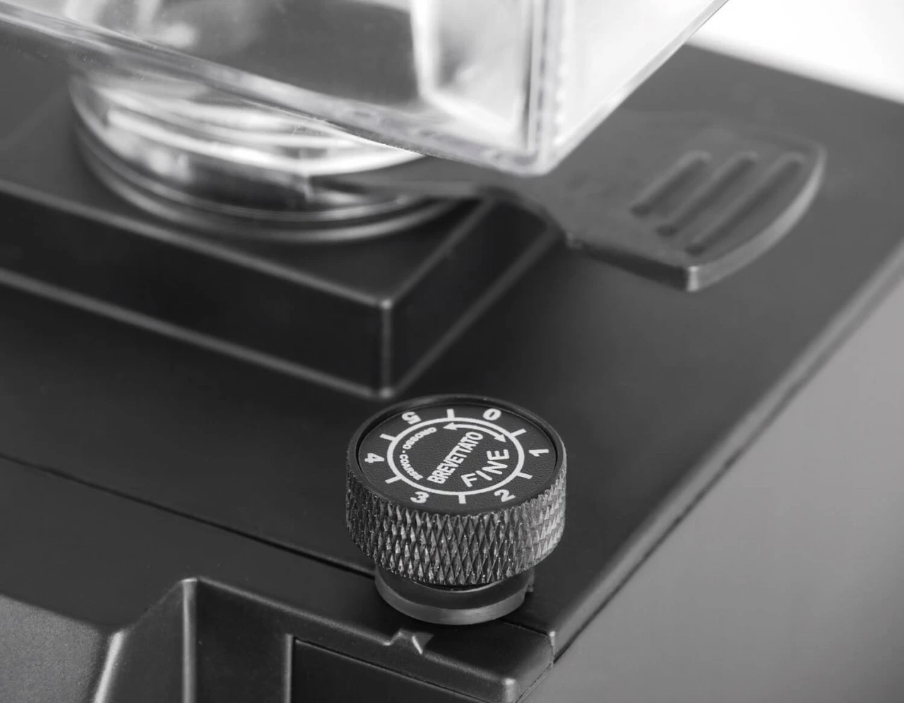 Die patentierte 4-Punkt-Aufhängung des Mahlwerkes ermöglicht eine stufenlose Einstellung des Mahlgrades über den kleinen Drehknopf am Gehäuse, das für sich genommen schon ein sehr geiles Detail ist. Die Eureka Mignon Specialita ist durch das innovative und gleichzeitig robust gebaute Mahlwerk problemlos zu reinigen und Fremdkörper können sehr einfach entfernt werden.