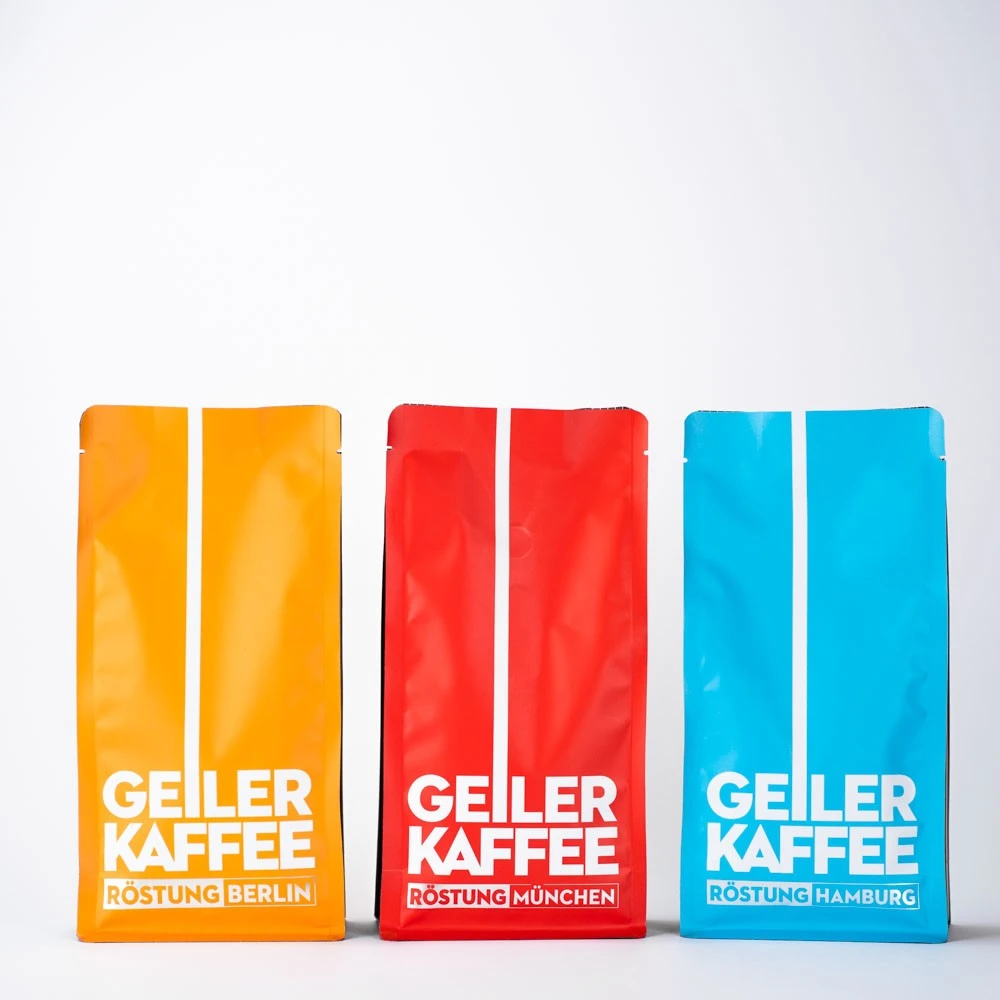 Das GEILER KAFFEE Probierpaket mit unseren 3 tollen ausgesuchten Sorten. Als Geschenk oder zum selber verbrauchen perfekt. Im Karton sind auch noch einige GEILER KAFFEE Aufkleber, die Sie als Erkennungszeichen für geilen Kaffee auf Ihre Espressomaschine oder an Ihre Türe zu hause oder im Büro kleben können.