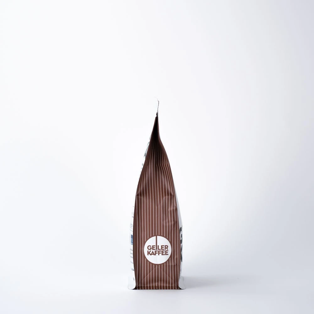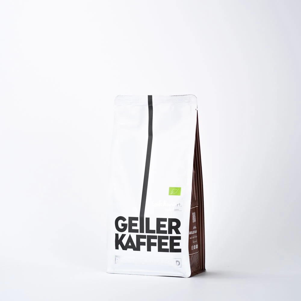 Ein „running Gag“ in Deutschland ist ja immer, dass man . Die Rösterei GEILER KAFFEE hat dies zum Anlass genommen das fehlende Koffein auf diese Weise zu interpretieren. Mit einem Schmunzeln muss man dies sehen und sich voll auf die Kaffeequalität konzentrieren. Die ist nämlich trotz entzogenem Koffein top. Ein sehr seltener Mexiko Rohkaffeee wird hier als Basis verwendet und nach der teuren Schweizer Wassermethode entkoffeiniert. Die Kaffees von GEILER KAFFEE werden in traditioneller Langzeitröstung und in kleinen Chargen hergestellt. Dies erfolgt in vielen, oft manuellen, Arbeitsschritten und bildet die Grundlage der Qualität und Frische der Produkte.
