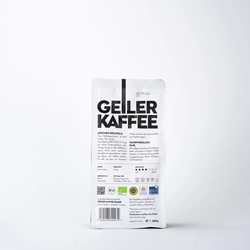 Schnellshopperinfos zu den 250g Bohnen entkoffeiniert BIELEFELD von GEILER KAFFEE: