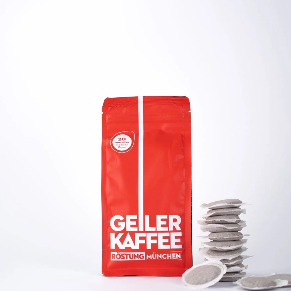 Das E.S.E. Padsystem kommt namentlich von „Easy-Serving-Espresso“ und erfreut sich zunehmender Beliebtheit. Einmal weil die Portionsgrößen durch Unternehmen wie Nespresso bekannt wurden und zum anderen, weil eben derselbe Hersteller mit den Alukapseln für extrem viel Müll sorgt und die Kunden nach alternativen suchen. Durch die ESE Pads von GEILER KAFFEE schlagen Sie gleich mehrere Fliegen mit einer Klappe. Über 90% weniger Abfall, weil diese offen zu jeweils 20 Stück in einem wiederverschließbaren Beutel verpackt sind. Die gebrauchten Pads können Sie ganz easy in den Bioabfall entsorgen. Zum anderen haben Sie 7 Gramm besten Kaffee in den Kaffeepads, die an der Maschine einen echten Espresso zaubern, wie an einer großen Espressomaschine.