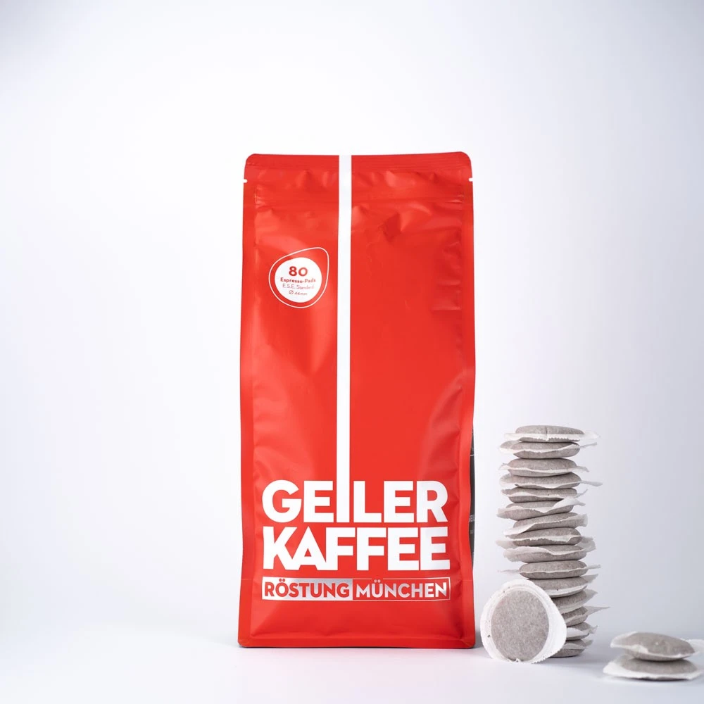 Das E.S.E. Padsystem kommt namentlich von „Easy-Serving-Espresso“ und erfreut sich zunehmender Beliebtheit. Einmal weil die Portionsgrößen durch Unternehmen wie Nespresso bekannt wurden und zum anderen, weil eben derselbe Hersteller mit den Alukapseln für extrem viel Müll sorgt und die Kunden nach alternativen suchen. Durch die ESE Pads von GEILER KAFFEE schlagen Sie gleich mehrere Fliegen mit einer Klappe. Über 90% weniger Abfall, weil diese offen zu jeweils 80 Stück in einem wiederverschließbaren Beutel verpackt sind. Die gebrauchten Pads können Sie ganz easy in den Bioabfall entsorgen. Zum anderen haben Sie 7 Gramm besten Kaffee in den Kaffeepads, die an der Maschine einen echten Espresso zaubern, wie an einer großen Espressomaschine.