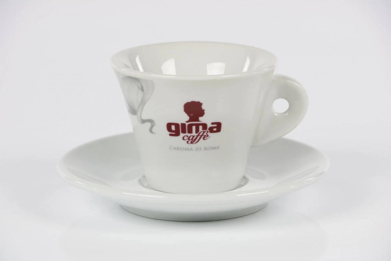 - Optik: Aufgedrucktes Gima Caffè Logo und Schriftzug in Innenseite der Tasse