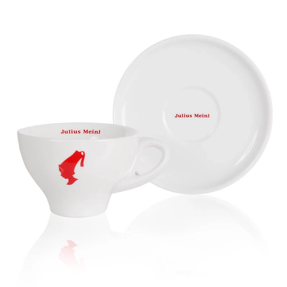 Die Julius Meinl ist ein Vertreter der sechsteiligen Classic Line, die aus , Melange, Cappuccino, zwei Jumbo – und einem Milchkännchen besteht. Allen gemein ist die hohe Tassenqualität und das schöne Julius Meinl Logo auf der Vorderseite. Das hochwertige Porzellan ist besonders dickwandig damit die Temperatur des Cappuccino nicht gleich stark abfällt, bevor man ihn genießen konnte.