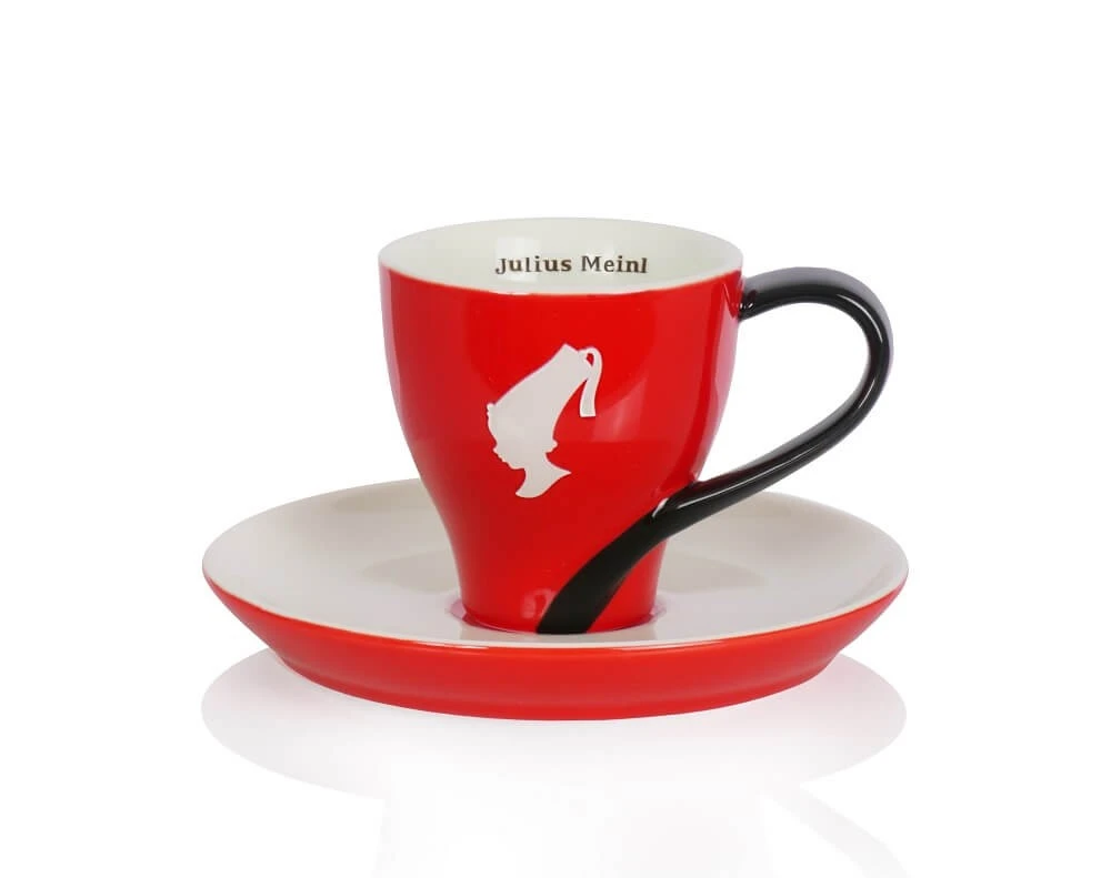 Die Julius Meinl Espressotasse ist der kleinste Vertreter der fünfteiligen Trend Line, die aus , Melange, Cappuccino, Jumbo -Tasse und einem Milchkännchen besteht. Allen gemein ist die hohe Tassenqualität und das schöne Julius Meinl Logo auf der Vorderseite. Das hochwertige Porzellan ist besonders dickwandig damit die Temperatur des Espresso nicht gleich stark abfällt, bevor man ihn genießen konnte. Zusätzlich hat Julius Meinl mit der Trend Line ein modernes Design für den Tassenhenkel entwickelt.