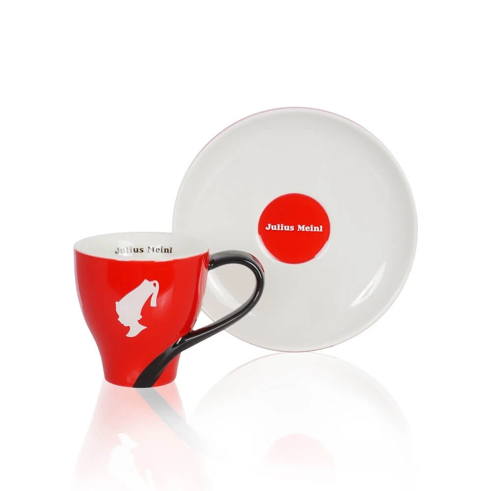 - Optik: Schönes modernes Espressotassendesign – wertiges Porzellan in rot/schwarz mit Julius Logo