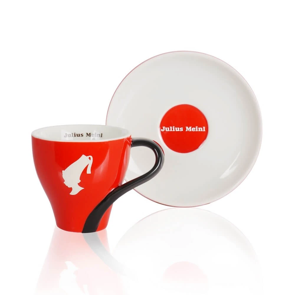 Die Julius Meinl Espressotasse ist der kleinste Vertreter der fünfteiligen Trend Line, die aus , Melange, Cappuccino, Jumbo -Tasse und einem Milchkännchen besteht. Allen gemein ist die hohe Tassenqualität und das schöne Julius Meinl Logo auf der Vorderseite. Das hochwertige Porzellan ist besonders dickwandig damit die Temperatur des Espresso nicht gleich stark abfällt, bevor man ihn genießen konnte. Zusätzlich hat Julius Meinl mit der Trend Line ein modernes Design für den Tassenhenkel entwickelt.
