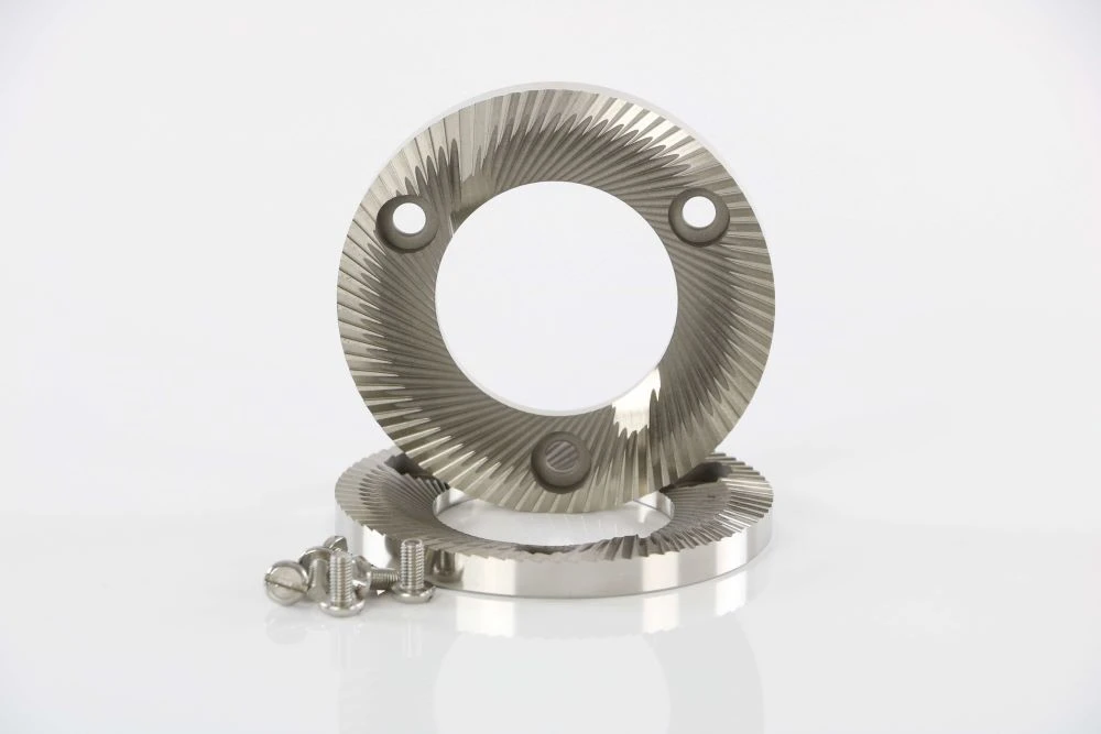 Ein Set aus 98 mm Premium-Gussmahlscheiben für die Getreide-Vermahlung (Getreide-Cut) mit der EK43 bzw. zur Umrüstung auf eine EG43. Sie benötigen dazu noch den passenden mit reduzierter Förderleistung