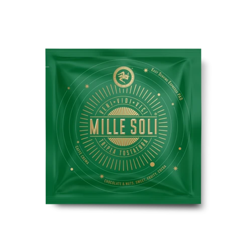 Der beliebte MilleSoli Caffé Crema ist nun auch als ESE Kaffeepads erhältlich. Hier werden zwischen zwei hauchdünnen Filterblättchen genau 7 Gramm bestens gemahlener gepresst und einzeln verpackt. Die portionsweise Möglichkeit für Kaffeeliebhaber, die nicht so viele am Tag trinken.