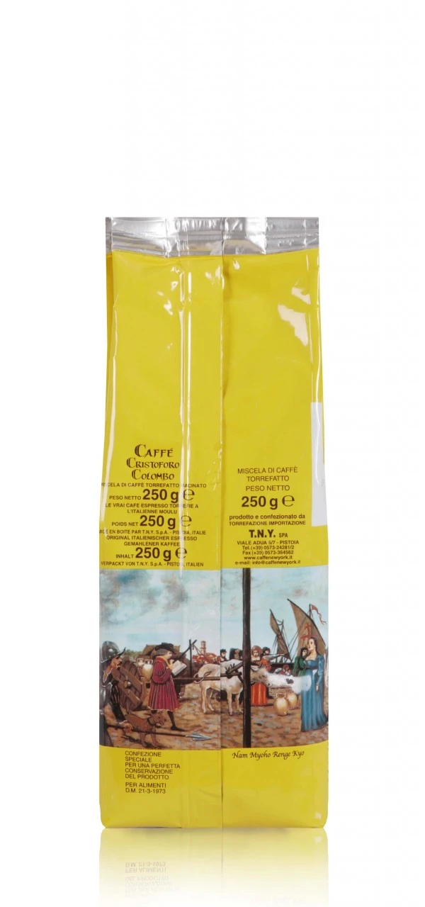 Die , die in der Nähe von Florenz liegt, hat sich den Namen NEW YORK zu einer Zeit gegeben, als die neue Welt in aller Munde war. Denn in den 30er Jahren des letzten Jahrhunderts war die Stadt New York und die USA das Land der Träume. Auf den Spuren des Entdeckers Cristoforo Colombo ist dieser Kaffee eine einmalige Komposition aus Mittelamerika und Indien – alles Stationen des Entdeckers Columbus. Die 80% Arabica-Bohnen stammen aus Mittelamerika, während die Robusta-Bohnen in Indien ihren Ursprung haben. Genießen Sie die nussig-schokoladigen Aromen und die tolle feinporige Crema.