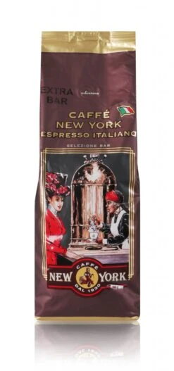 Das Unternehmen Caffé New York besticht durch seine große Auswahl an qualitativ hochwertigen Espressosorten. Von New York Extra, bestehend aus 95% Arabica- und 5% Robustabohnen, über den milden, entkoffeinierten New York Decaffeinato oder die New York Espressopads ist für jeden etwas dabei. Den New York Extra Bar sollte man trotz seiner ähnlichen Aufmachung zu den anderen Produkten auf keinen Fall übersehen. Wer einen vielseitigen Kaffee sucht, um immer für den (manchmal stressigen) Alltag gerüstet zu sein, der hat hier das perfekte Produkt gefunden! Dabei sind die Bohnen sowohl pur als auch in einer Milchmisch-Kreation ein besonderer Genuss.