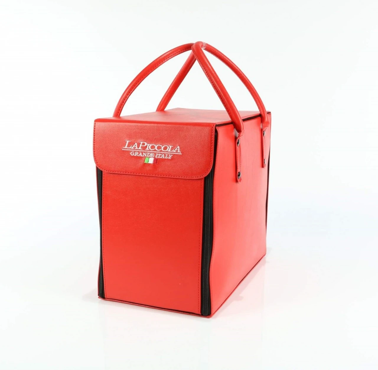 Mit dieser stylisch roten Reisetasche von La Piccola geht Ihre Piccola e Piccola Espressomaschine auf Reisen.