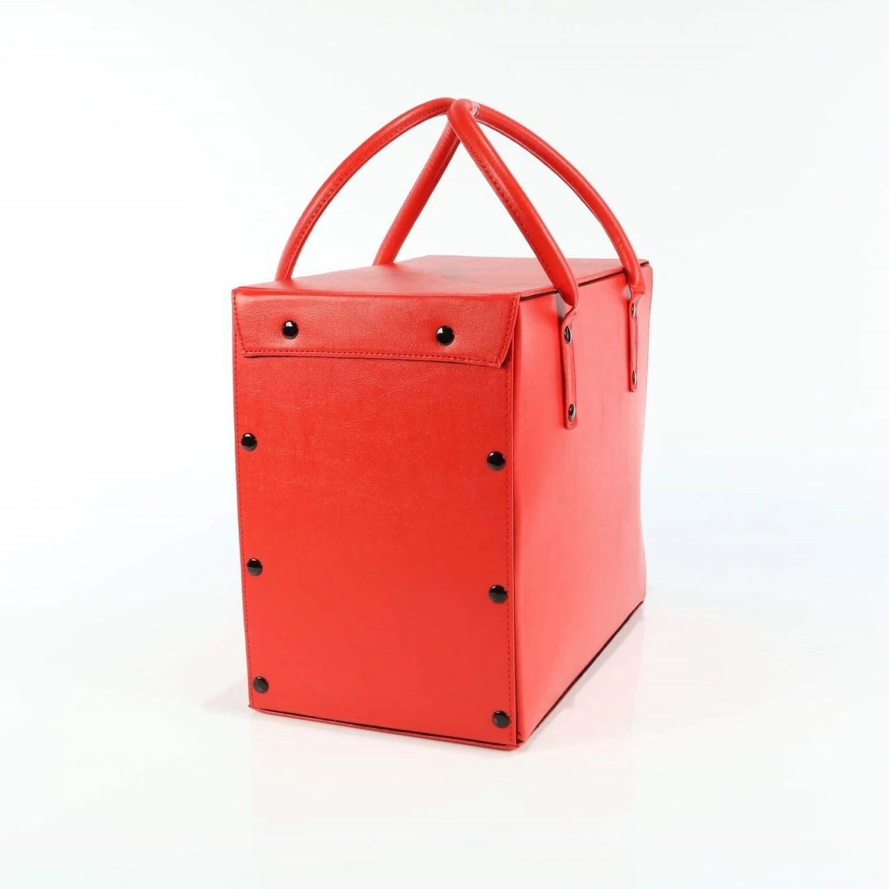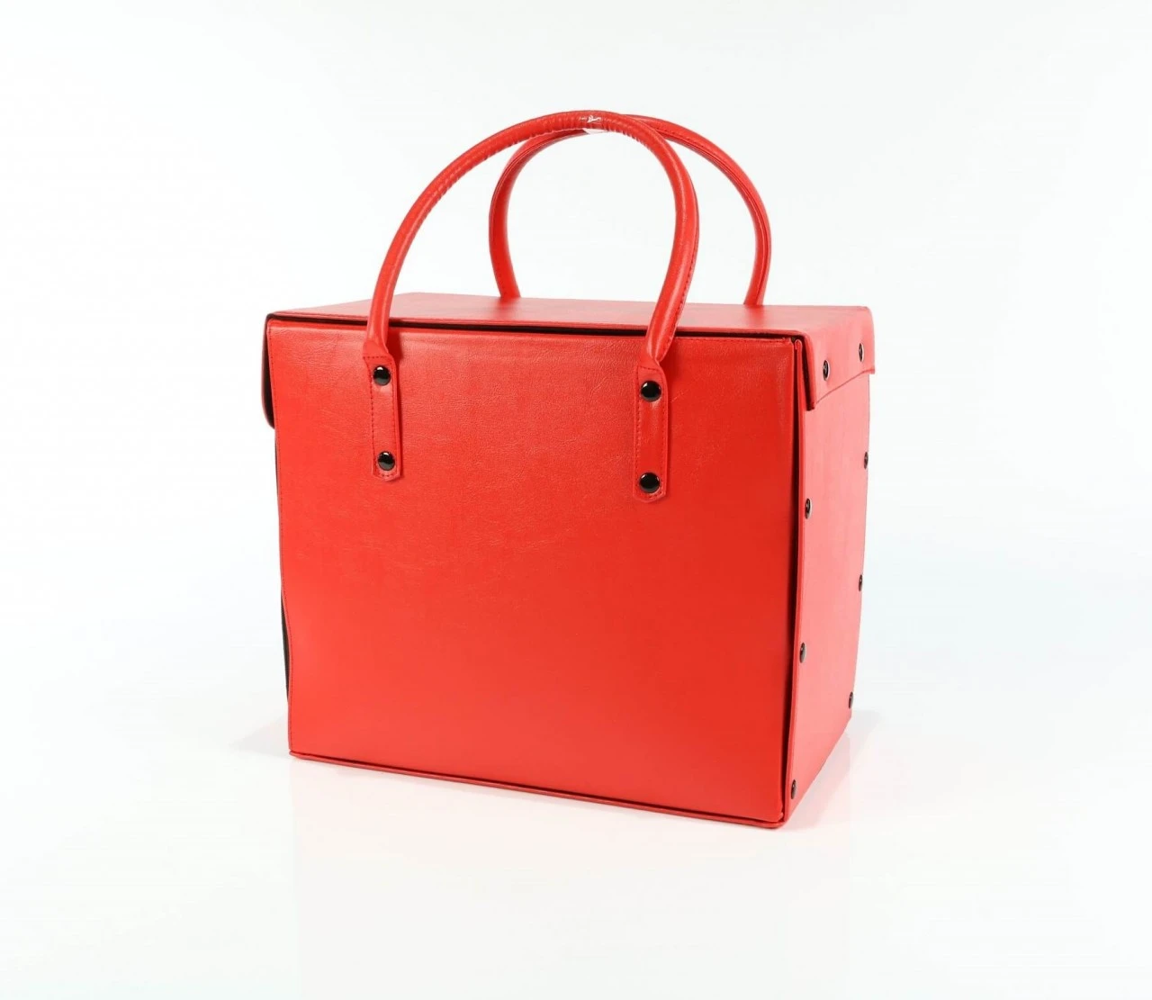 Die Tasche ist in Rot und aus hochwertigem Kunstleder/Kunststoff gearbeitet und mit 2 stabilen Henkeln.