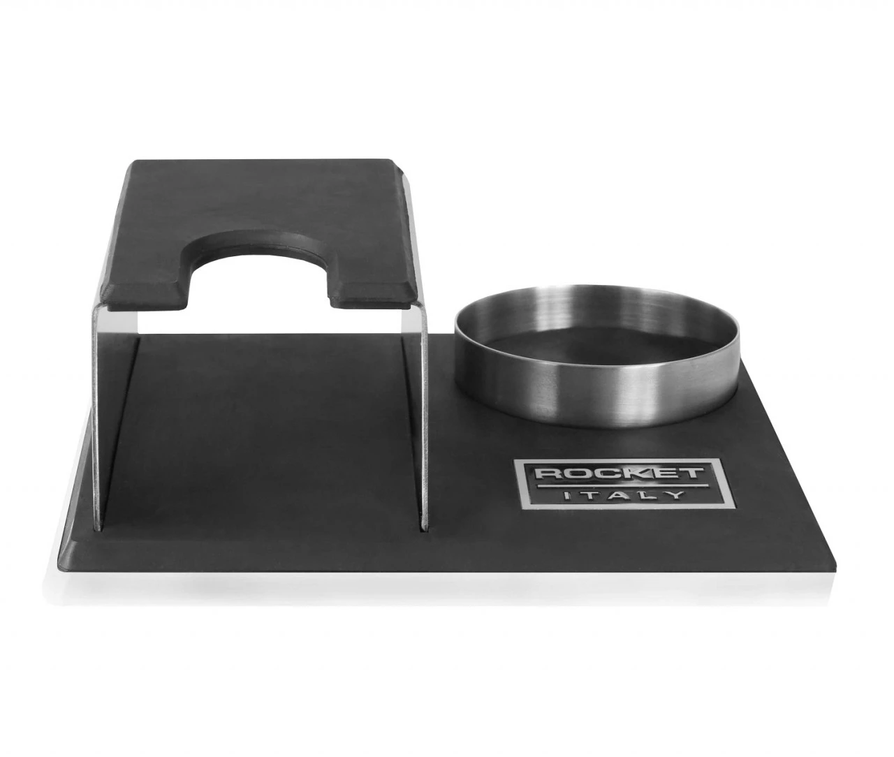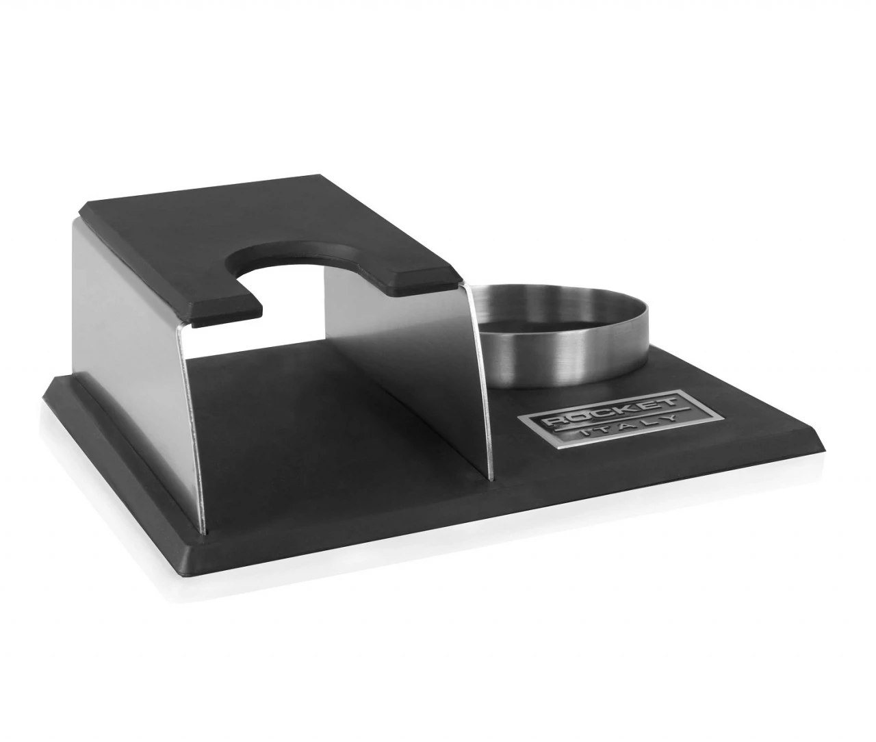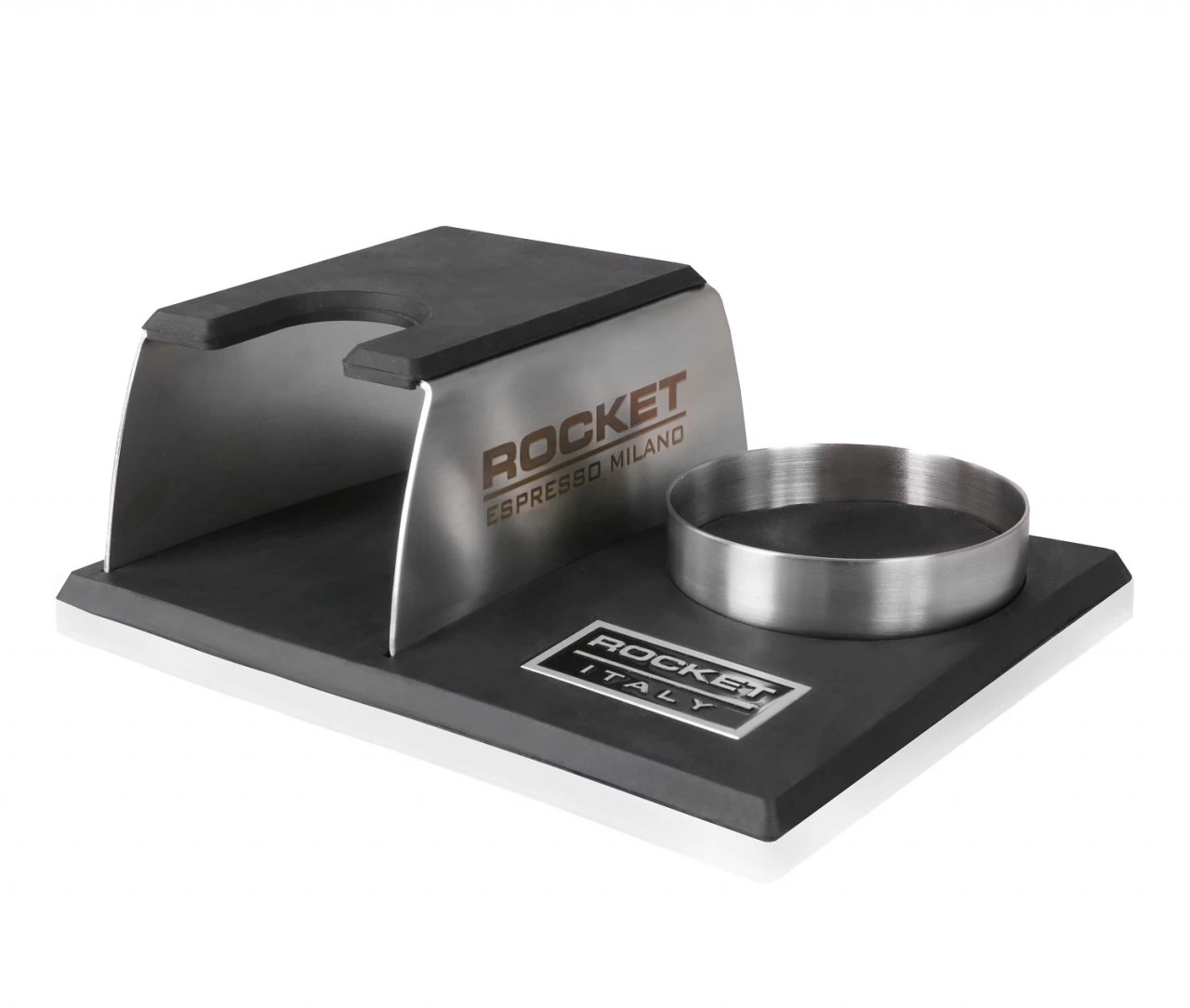 | H | Original Rocket Espresso Milano Equipment macht SpaßEin perfekter Kaffee ist immer das Ergebnis aus verschiedenen Einzelkomponenten, die einfach passen müssen. Richtiges Tampern gehört essentiell dazu. Die meisten Barista zu Hause verwenden den Einsersiebträger. da dieser jedoch auf dem einzelnen Auslauf nicht fest steht beim Anpressen des Kaffeemehls muss man eine Ablagestation haben. Wie diese hier – von Rocket und für Rocket Fans. |