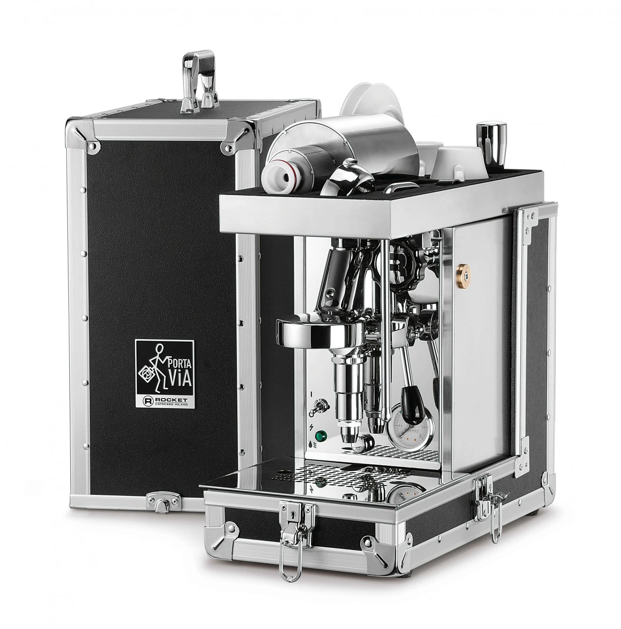 Bei der Rocket PortaVia handelt sich um einen vollwertigen E61 Zweikreiser, mit Vibrationspumpe, integriert in ein stabiles Flightcase.